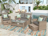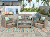 This 4-piece U-style patio furniture set is designed for outdoor living spaces, offering a stylish and functional solution for relaxing or entertaining on your patio or deck. Crafted to combine comfort and contemporary design, it complements a variety of outdoor settings.