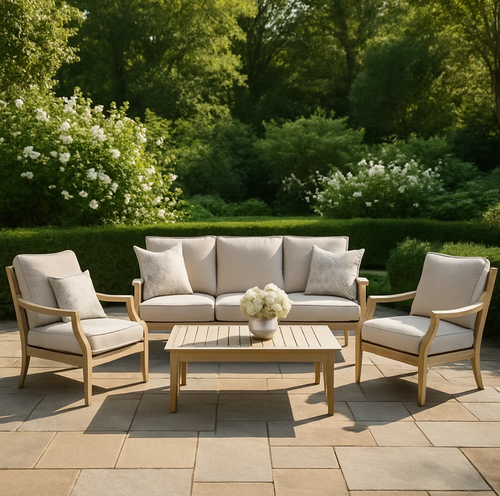 Modern Luxe Teak Patio Set The Modern Luxe Teak Patio Set brings a contemporary aesthetic to outdoor spaces. Crafted from natural teak wood and hig...